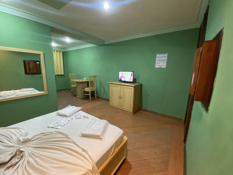 2 canais eróticos, 2 duchas, ar condicionado, saleta para refeições, som, TV.